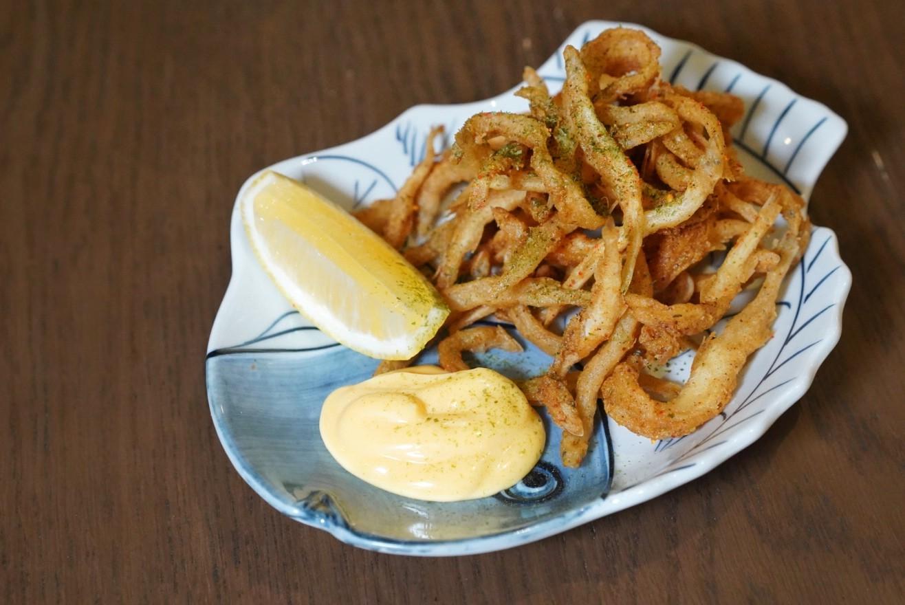 Whitebait (RMB78) are coated in seasoned flour and deep-fried, flecked with equal parts sweet and savory furikake seaweed powder and dunked in tangy XO aioli – the ideal drinking snack.