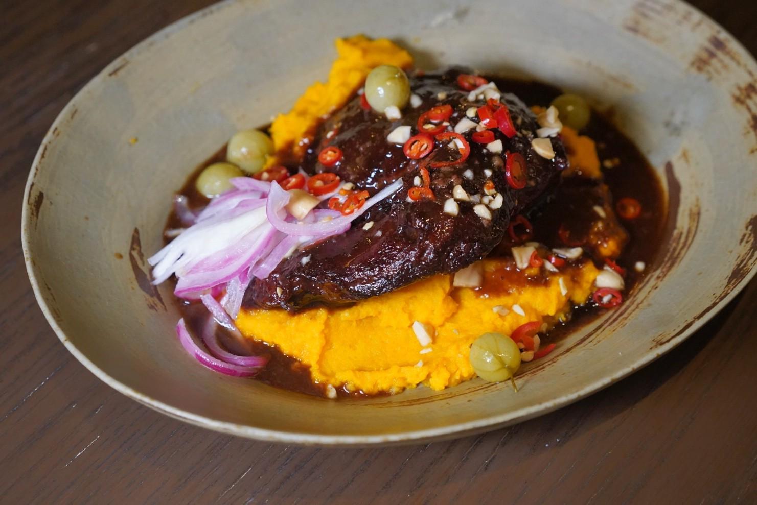 As for the heftier plates, there’s the Please Curry Me (RMB98) – a play on Cantonese beef brisket curry, with the brisket shredded and rolled intro fried spring roll cigarillos with Comte cheese, resting atop a thick, sludge-like stew.