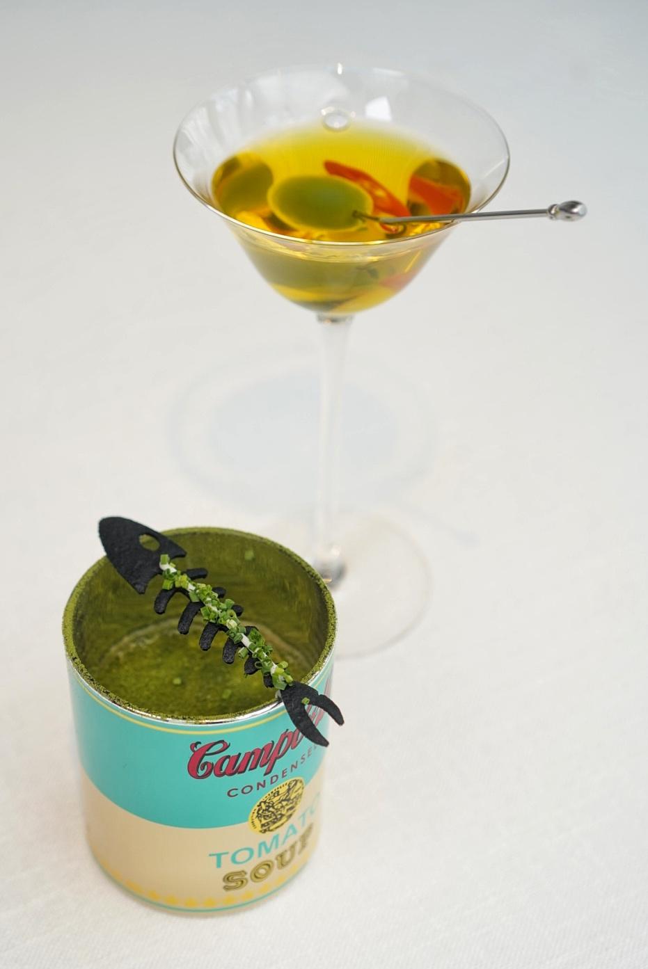 Amuse Bouche – Mediterranean tuna under oil, potato foam, parsley powder; Bergamo “martini.”