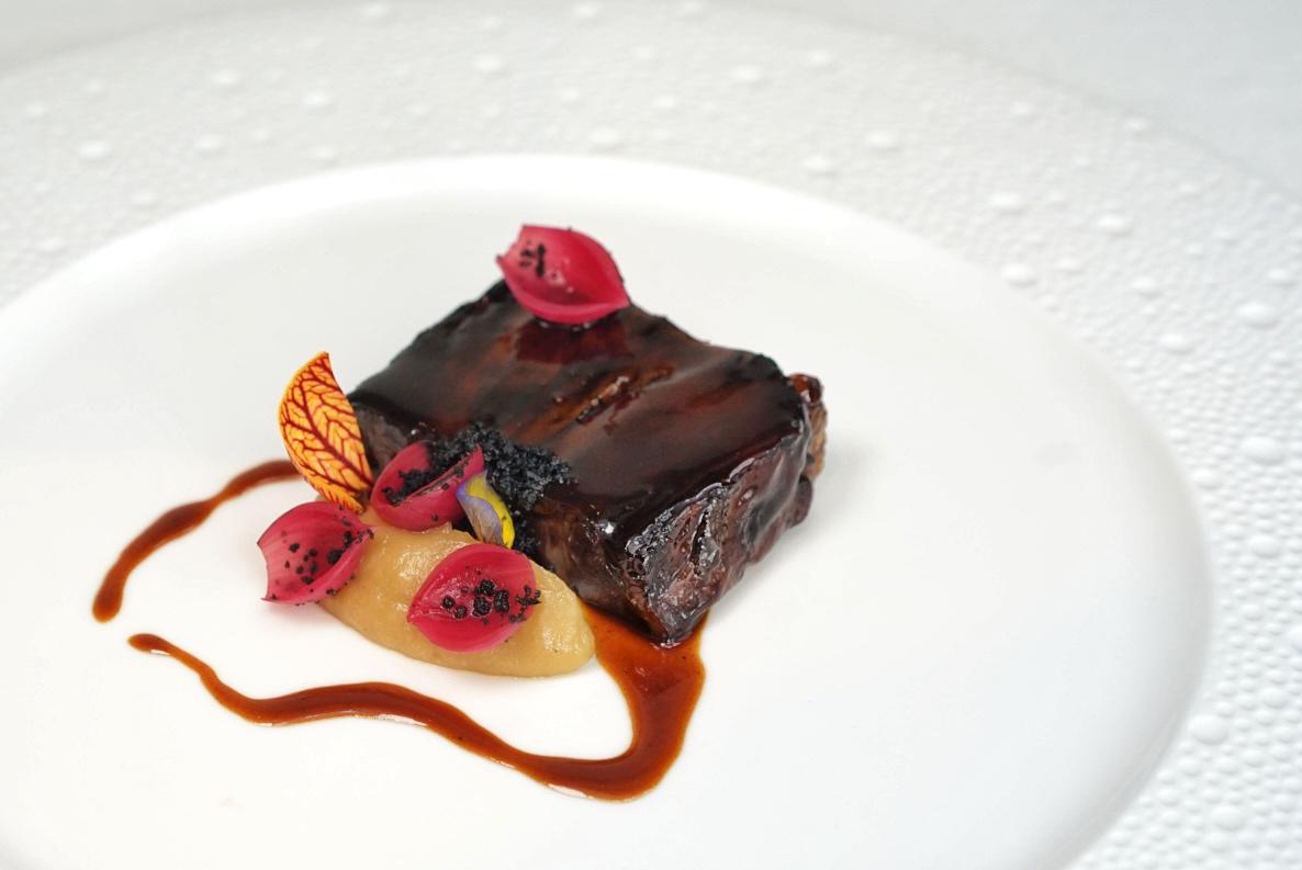 The sticky beef jus glazed- and black garlic dusted-Braised Australian Wagyu M7 Short Rib (RMB518) is 100 grams of pure succulence, a worthwhile must-order secondi add-on.