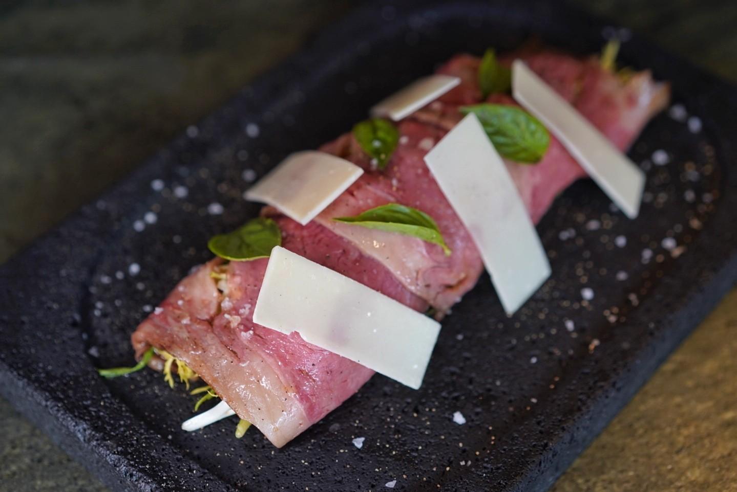Baked into a meticulously folded and salted pastry crust, the three-day dry-aged Snapper a La Sal (RMB688) is theatrically sliced open, paired with all the “oohs” and “aahs” deserved by this sea-dweller's tableside debut.
