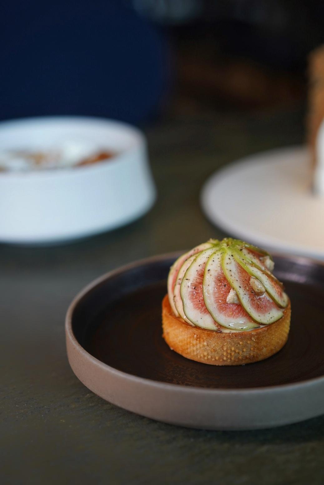 Dessert sees rippling waves of sliced fig fanned across the top of a buttery crust as the Fig Tart (RMB72). Inside rests a thick layer of Fig Newton-esque jam below strata of tangy cheese, pistachio and whipped citrus cream.
