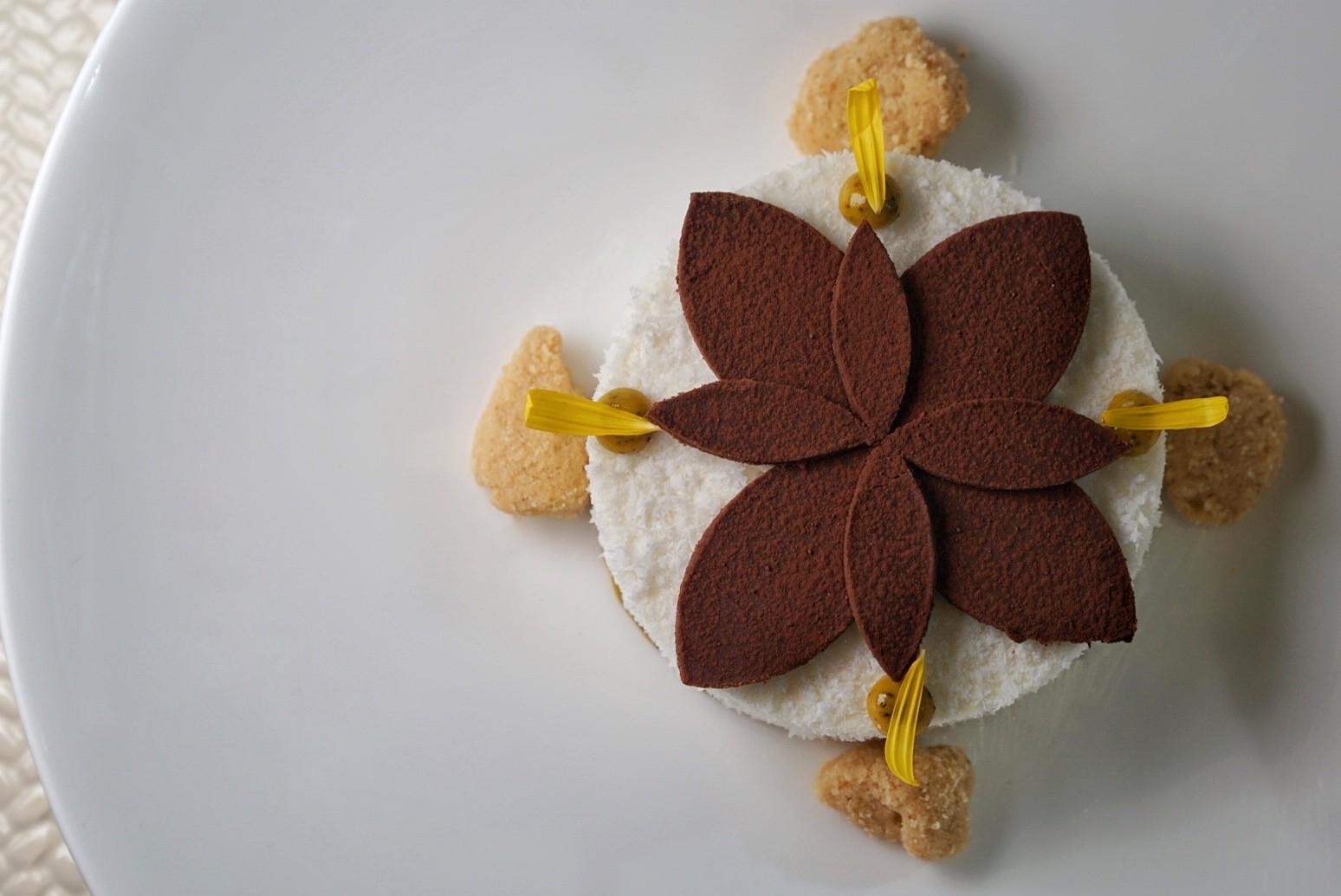 Like a work of art, La Noix de Coco (RMB128) is plated in all its symmetrical glory. A parfait made from coconut purée, fresh coconut and Malibu is chilled into a mousse, bedazzled with petal-like cutouts of chocolate ganache made from sustainable Vietnamese organice chocolate. Tart dots of passion fruit curd add the only semblance of color to this monochrome sweet, yet size doesn't matter when elegant balance is the result.