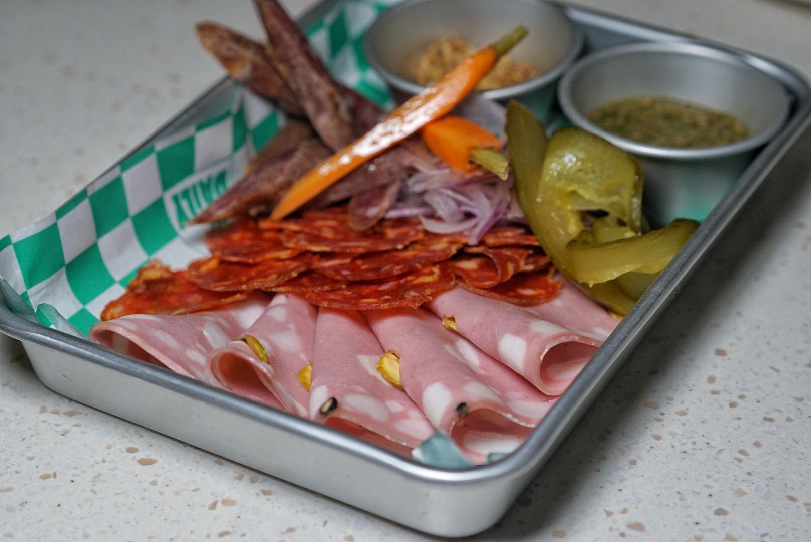 Then there's also the Cold Cuts Plate (RMB98) – with three cuts of meat (right now its mortadella, Napolese salami and llapis Spanish sausage, but who knows what next week will bring?) plus homemade pickles, olive tapenade and whole grain mustard – and the Cheese Plate (RMB98) featuring four different imported cheeses, both served with toasted bread.