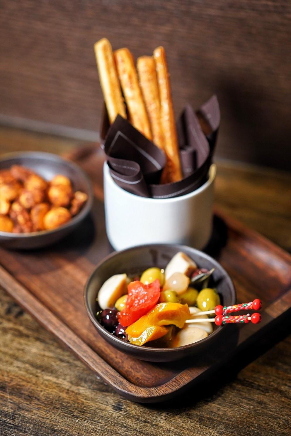 Nibbles span crispy beef tendon with Cajun powder, garlic and chili to house-dried pork jerky; from homemade parmesan grossini to marinated Spanish olives, plus a crunchy side of spiced macadamia and pecan nuts, and so much more.