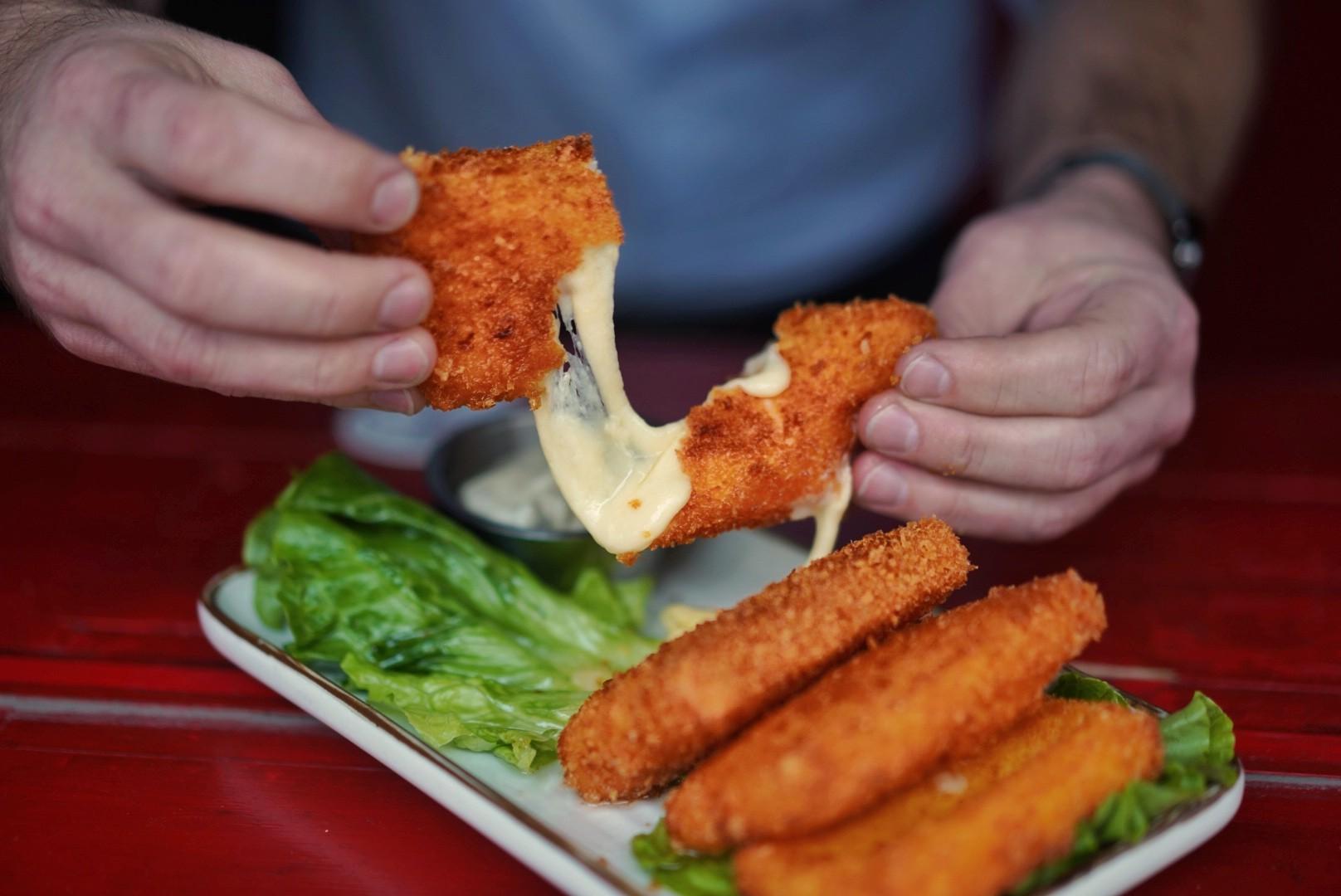 Four hundred glorious grams of breaded and fried gouda nuggets emerge, oozing gooey goodness all over everything they come into contact with.