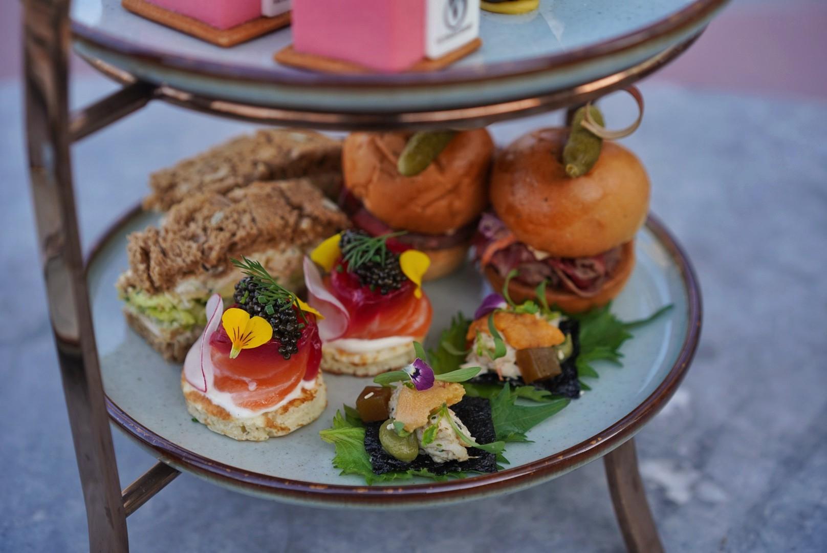 Each set comes with a mix of sweet and savory nibbles, plus a coffee or tea. Throw down an extra RMB68 to add on The Bombshell Cocktail, featuring an earthy tea-infused gin, peach liqueur, fruity hibiscus and – of course – prosecco bubbles.
