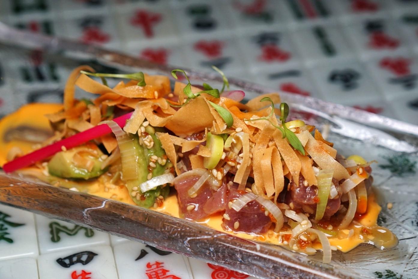 Like a deconstructed spicy tuna roll, the Nikkei-centric Ahi Poke (RMB78) presents alternating chunks of avocado and marinated, raw tuna, all resting atop an emulsified spicy mayo made from roasted shallot, garlic, chili and rice vinegar.