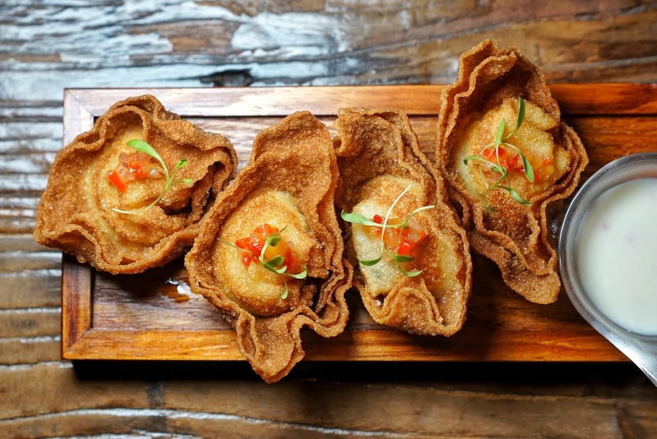 The Seafood Wontons (RMB78) see a Peruvian-style ceviche rolled into a wonton wrapper, flash-fried and speckled with a bright mango salsa and a leche de tigre dipping sauce – the citrus-based spicy marinade used originally to cure said fish in the classic Peruvian dish.