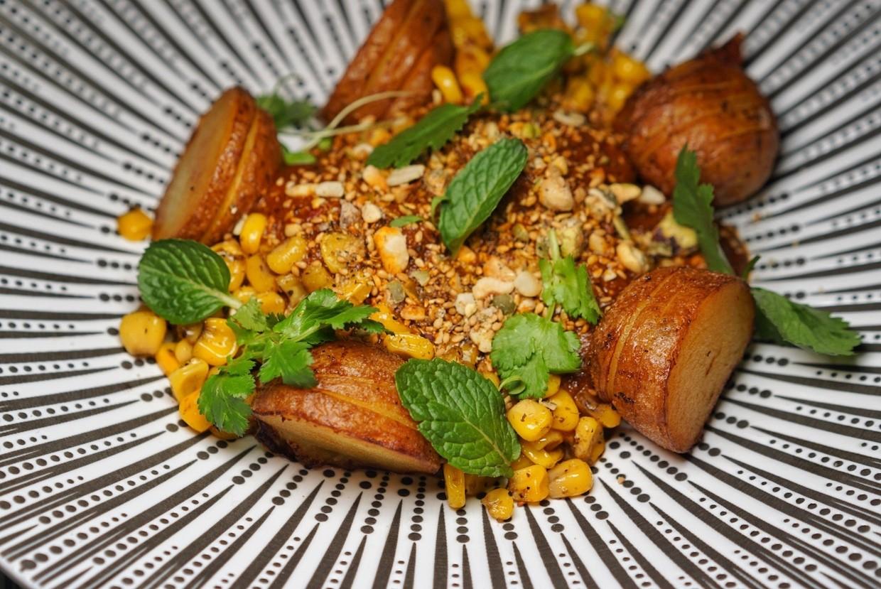 Smothered in a smoky pepper gravy and sweet corn kernels, the 18-hour Slow Cooked Lamb Shoulder (RMB98) is flanked by roasted potatoes and a scattering of Asian dukkah made of mixed nuts and pistachios, plus cumin and coriander seed for added crunch.