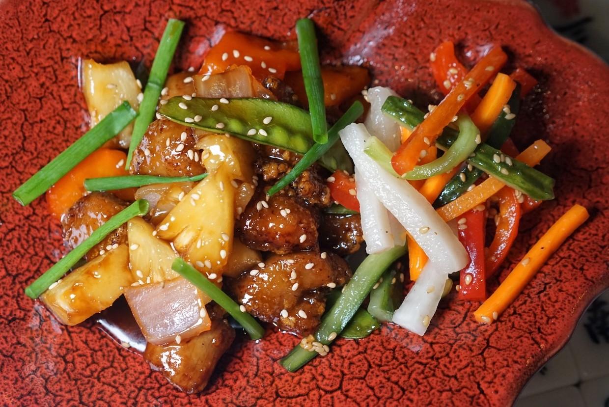 A tip of the hat to Cantonese diner cuisine, the Lima Cruyoc (RMB118) sees battered and fried strips of sweet and sour pork shoulder tossed in a tamarind glaze with pineapple and peppers, plus a colorful mix of homemade pickled daikon, carrots and peppers.