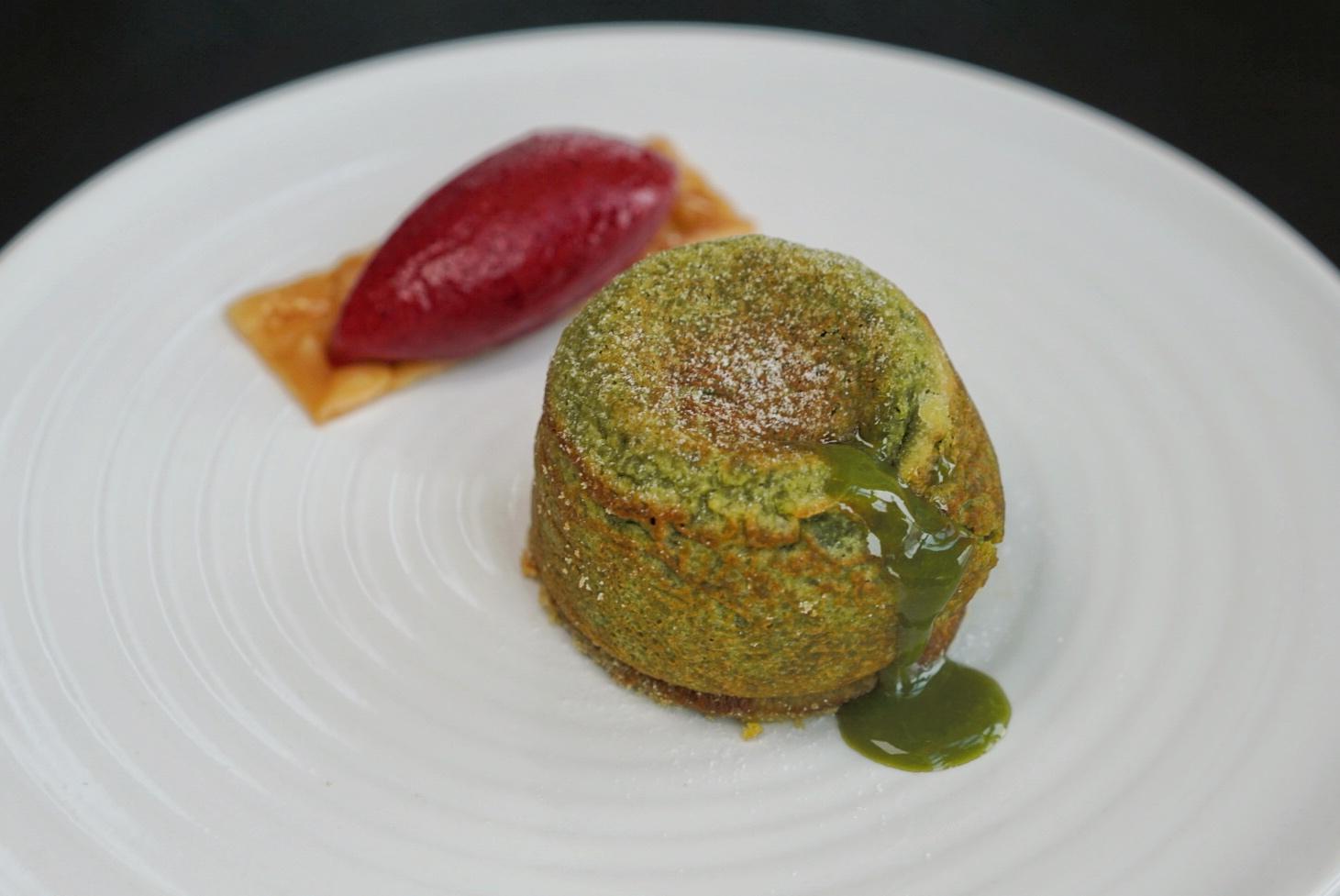 And for a Japanese take on the French chocolate fondant, the Matcha Chocolate Lava Cake (RMB100), when pierced, reveals a torrent of liquid matcha magma that trickles from the molten center, juxtaposed against sour cherry sorbet.