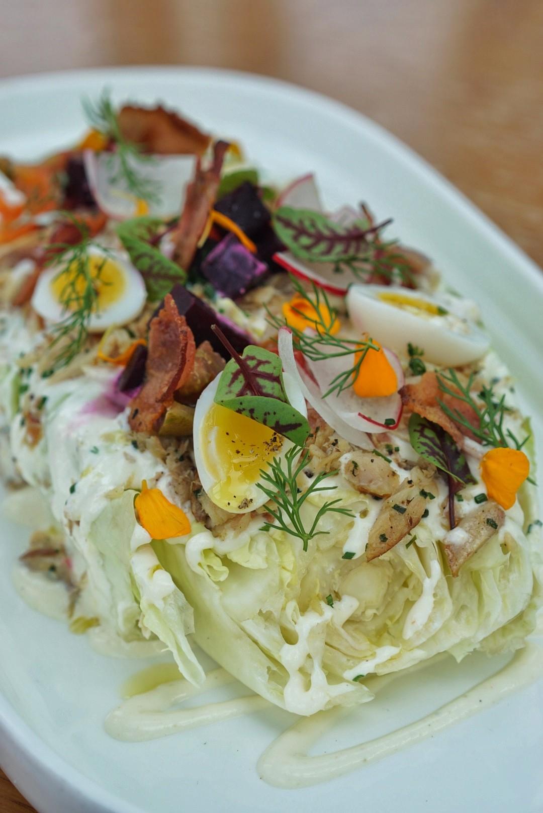 Lunch also offers a la carte selections, with main menu favorites like Smoked Trout Wedge Salad (RMB128) liberally garnished with yolk-oozing, soft-boiled quail eggs, bacon, cubed beetroot, tomato and a soupy buttermilk dressing.