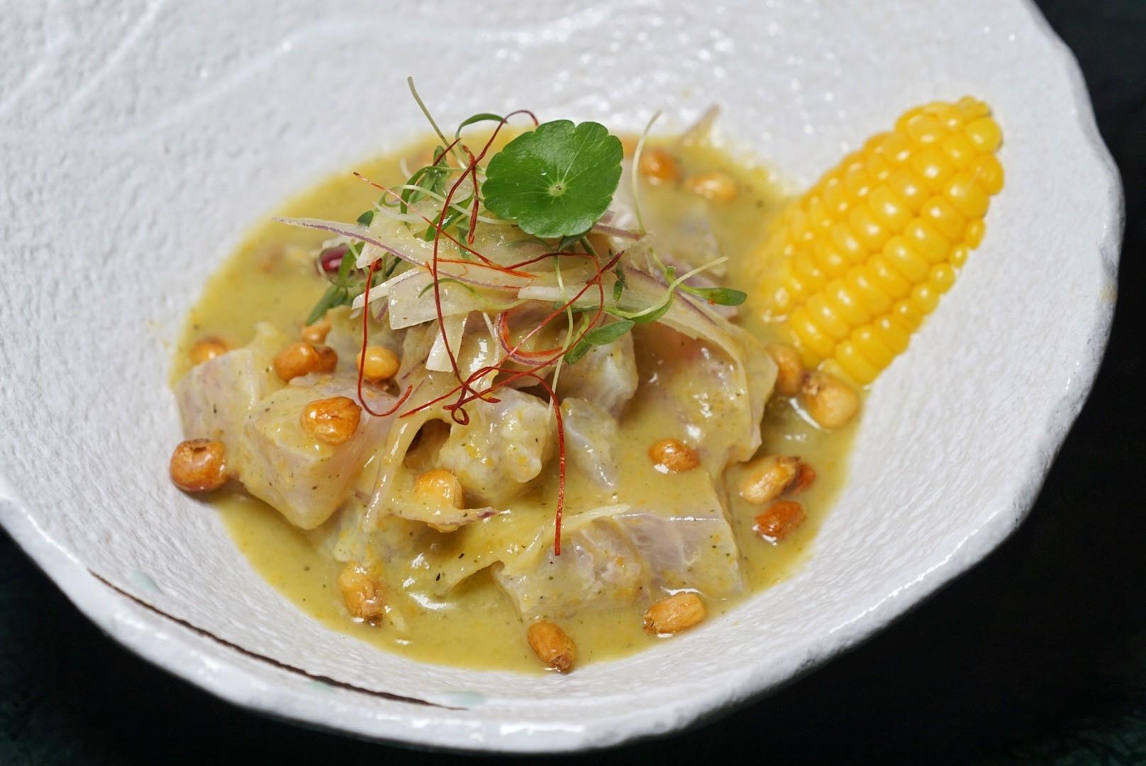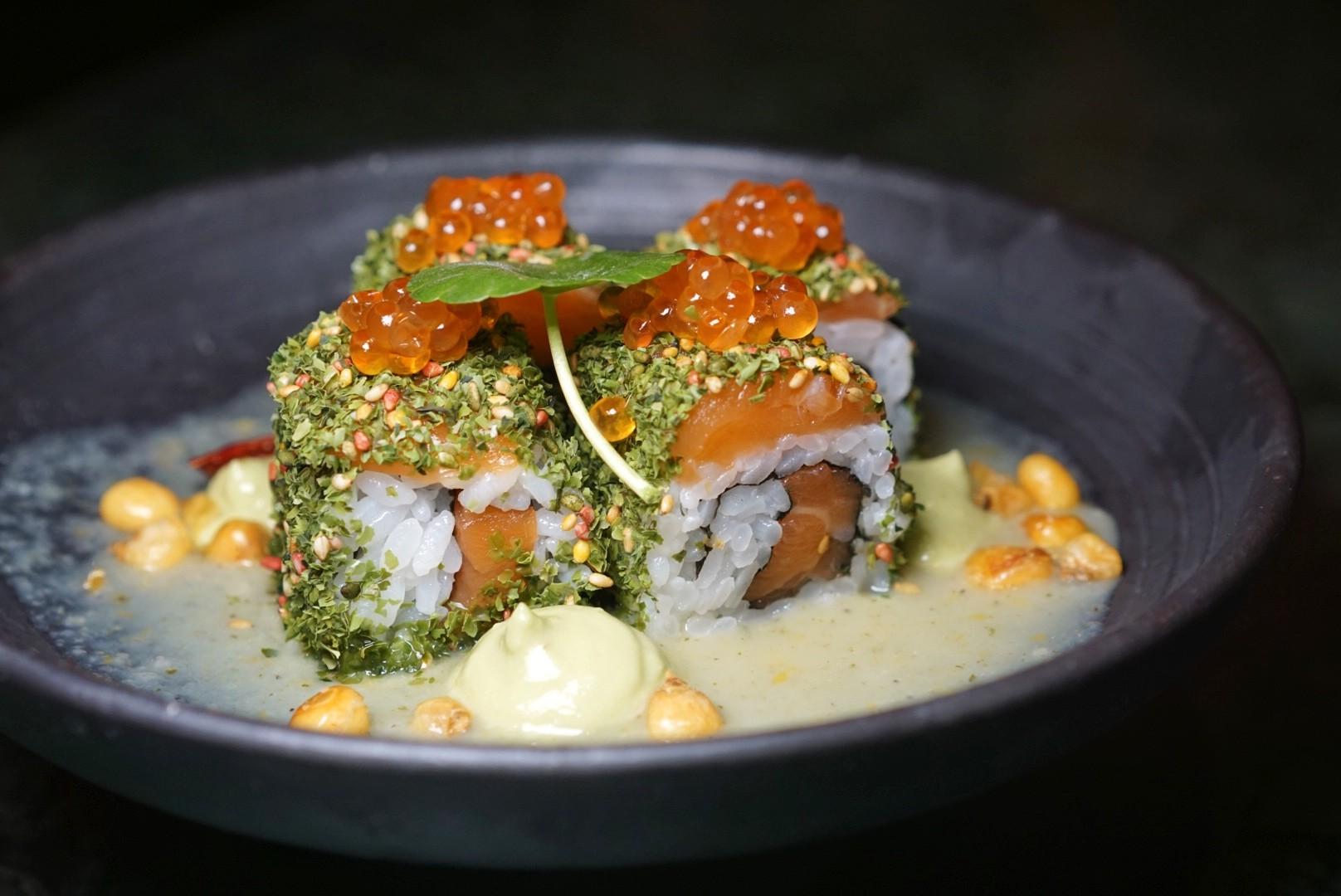 The rolls and tiraditos at Sakemate are a must. There’s the colorful Salmon Make Acevichado (RMB148), with salmon and tuna marinated in tiger milk, surrounded by sticky rice, and coated in seaweed powder and cancha (Peruvian toasted corn nuts), adorned with gleaming beads of ikura resting at the apex.