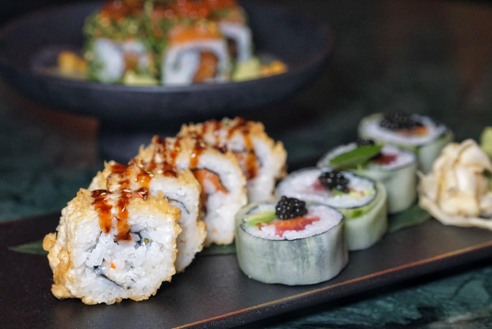 The delicate Futomaki Sushi Roll (RMB128) sees the menage a trois of salmon, tuna and white fish, all accented by avocado, an encircling ribbon of refreshing cucumber and caviar for a cleaner, more straightforward bite.
