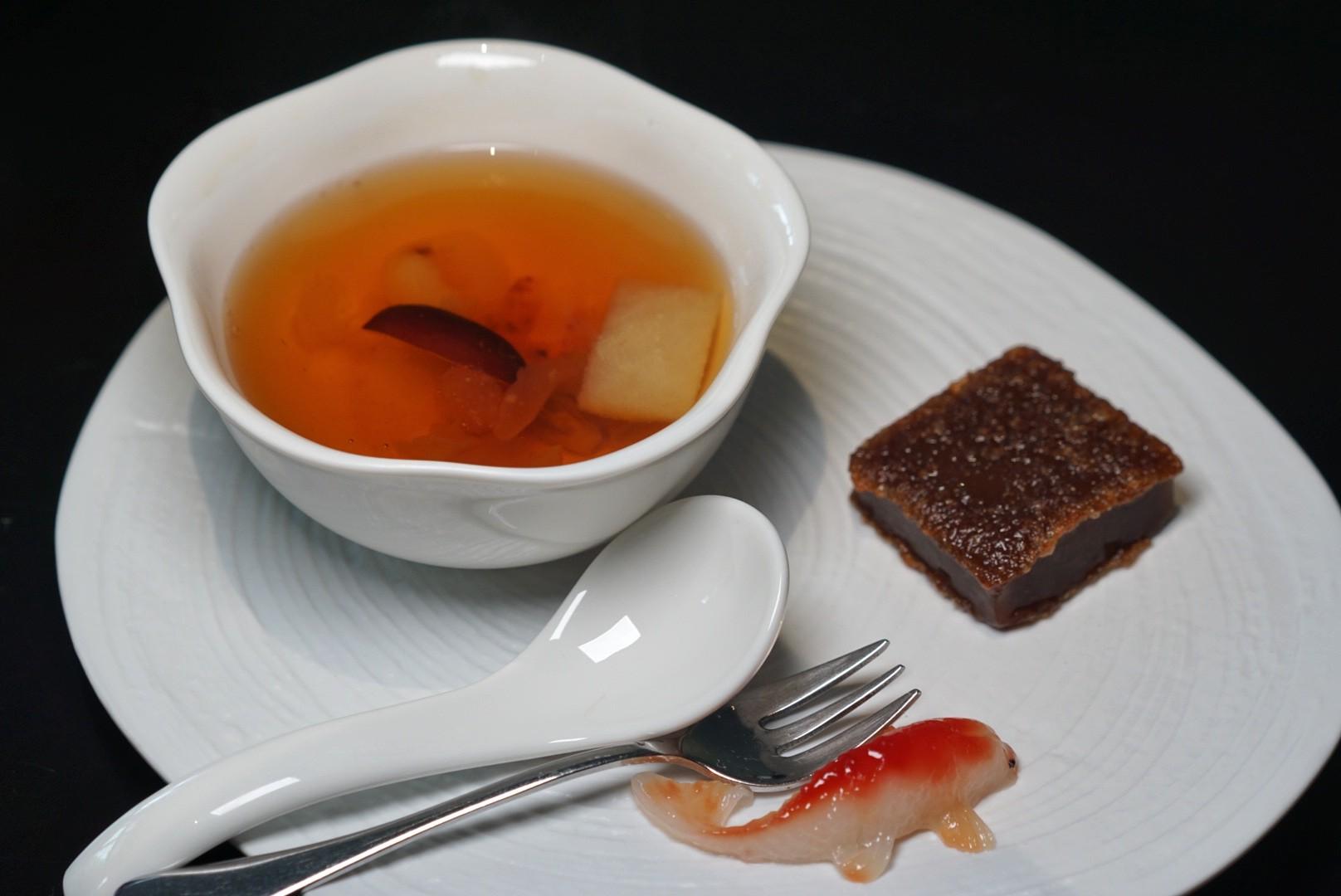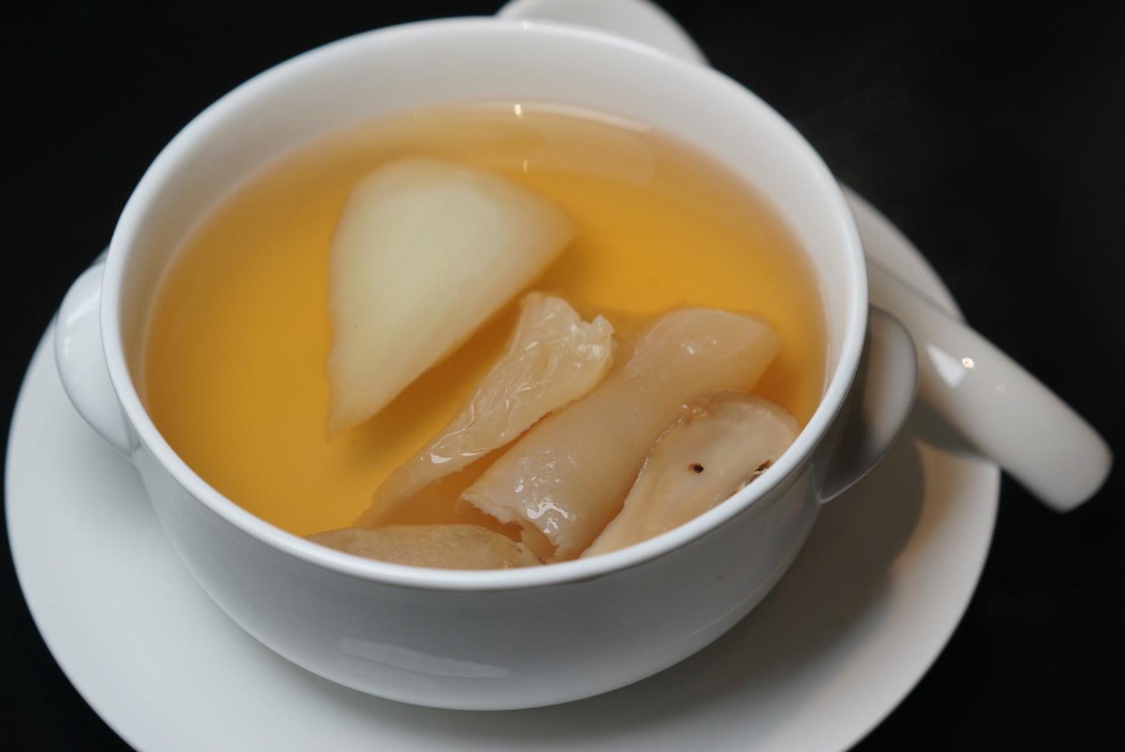 A warming soup of Double-boiled Fish Maw and matsutake is a delicate appetizer teaser to prepare the taste buds for what’s to come.