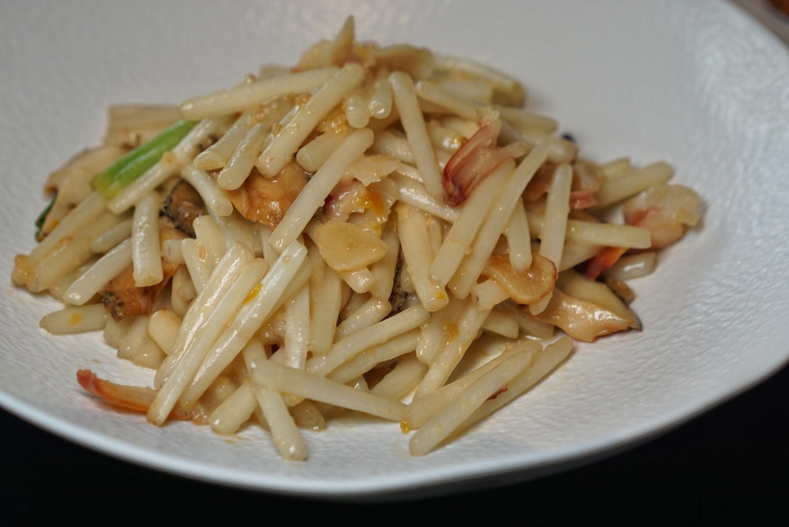 And Wok-Fried Abalone – with clams and crunchy peanut sprouts, also known as longevity sprouts, a healthy superfood.