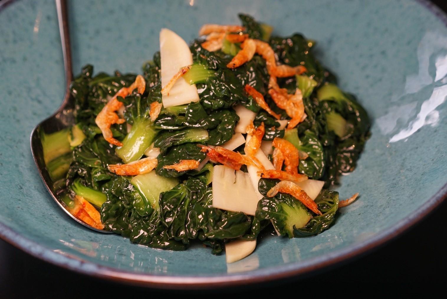 Following the mains comes as an array of sides, like Wok-Fried Winter Green Cabbage, sautéed with bamboo shoots and dried river shrimp.