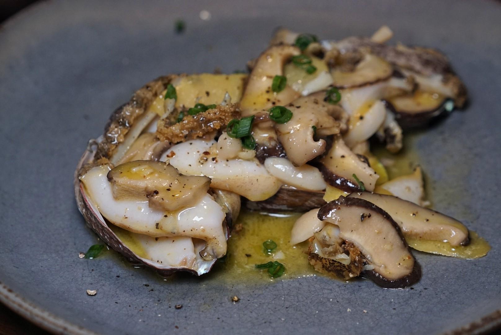 Utilizing a typically Chinese ingredient in a Western presentation, the Three Abalones (RMB158) are roasted and sliced, served with similarly chewy shitake mushrooms for a play on texture. The smoked lemon butter sauce and citrus peel slivers add an acidic pop to cut through the buttery char.