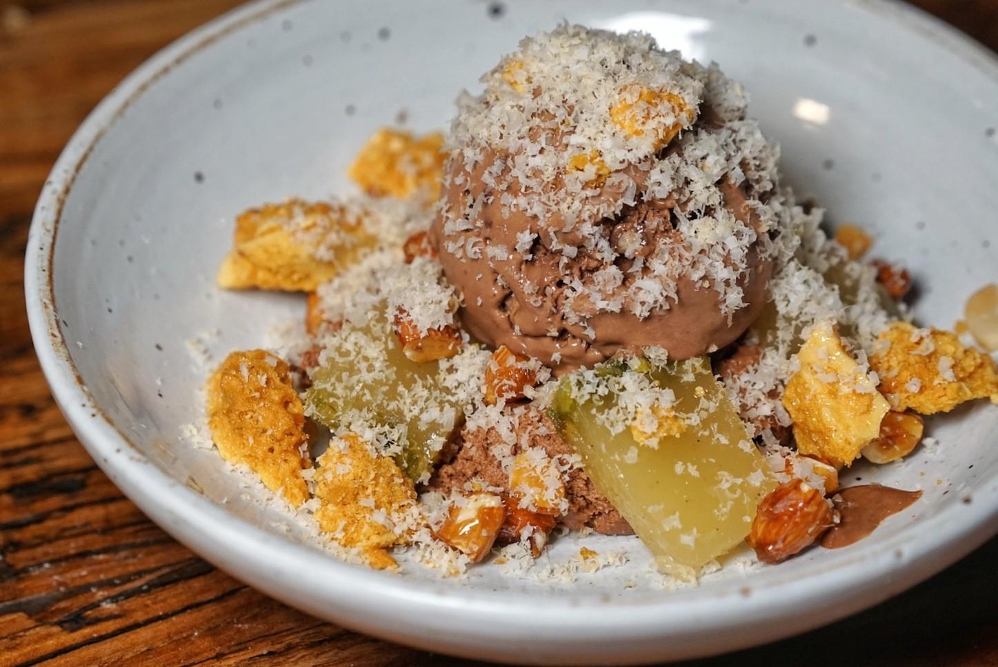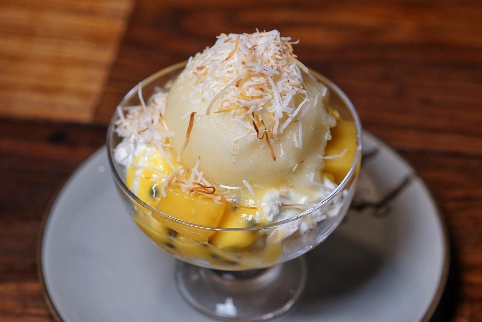 For the spring dieters, there’s the pleasantly tart Splice (RMB58), a heaping scoop of coconut-dusted pineapple gelato perched on a base of whipped cream, passionfruit curd, fresh mango cubes and toasted meringue crisps.