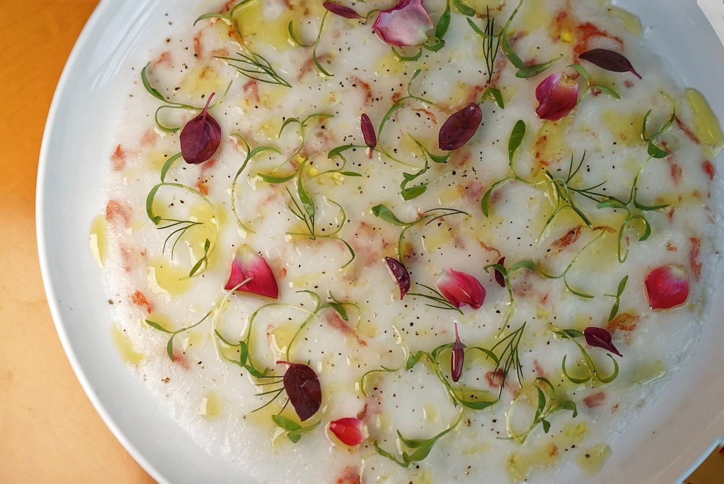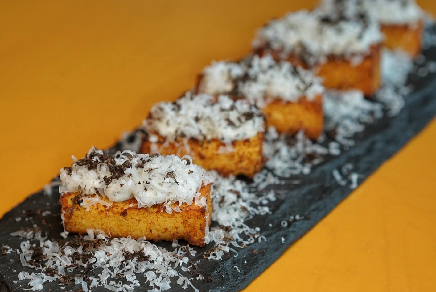 To begin, a paper-thin Prawn Carpaccio (RMB108) is equal parts delicate and elegant, hit with a drizzle of pesto olive oil and lemon jus, while naughty, seared polenta cubes, known as Sgagliozze (RMB48) are coated in a snow-like dusting of shaved parmesan and truffle. A thin layer of truffle mayonnaise leaves a creamy slickness on the tongue, urging you to take another crunchy bite.