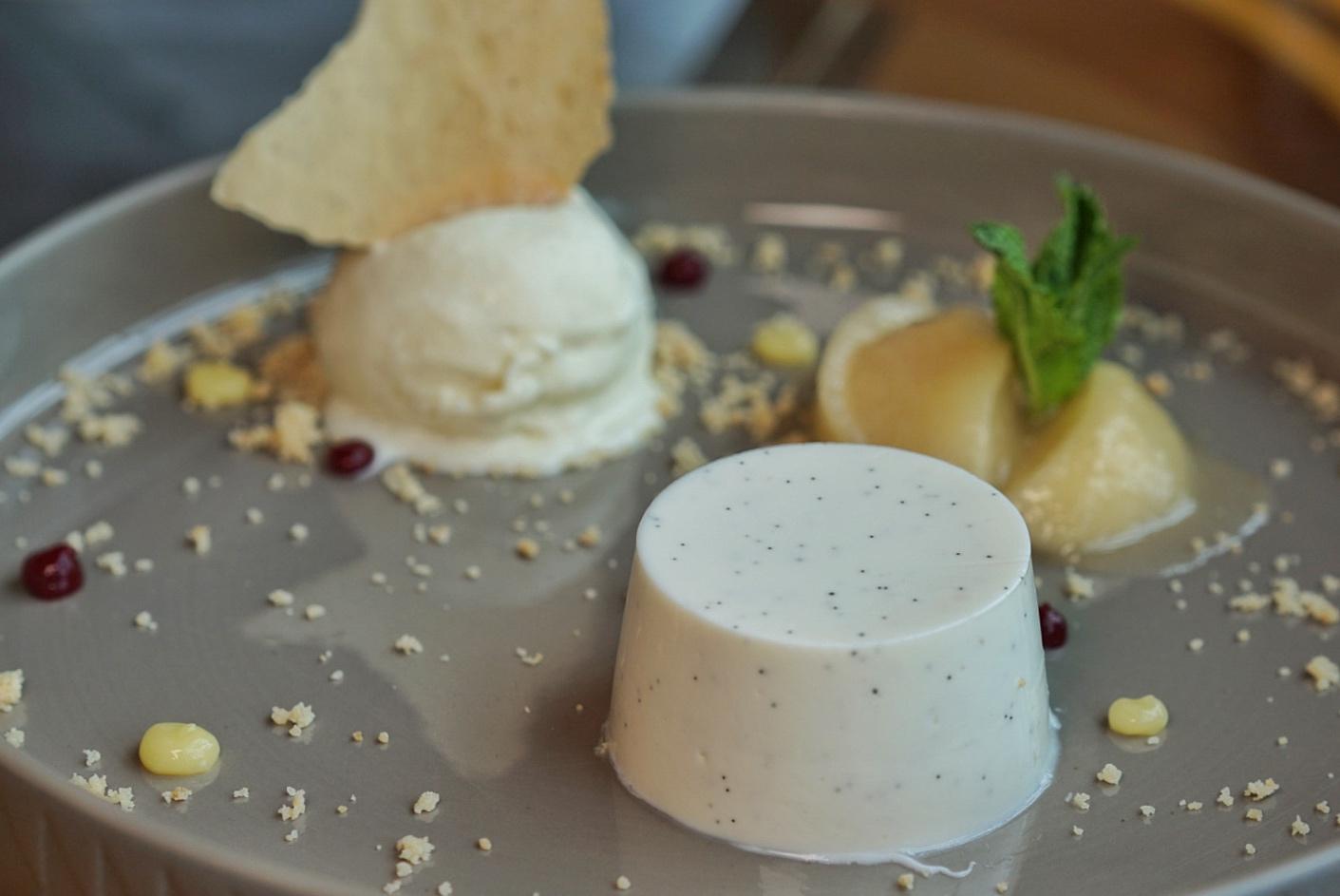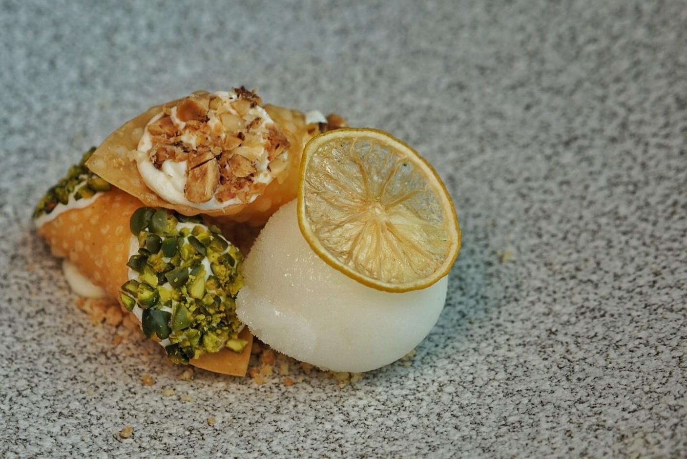 Similar to the flow of the rest of the meal, dessert is light and subtle – a pairing of caramelized hazelnuts and pistachios coat the mascarpone-filled Cannoli (RMB58), served with a palate cleansing lemon sorbet, and the trembly Vanilla & Peach Panna Cotta (RMB58) arrives cold with vanilla ice cream and seasonal fruits, like stewed pears or sugar-reduced strawberries.