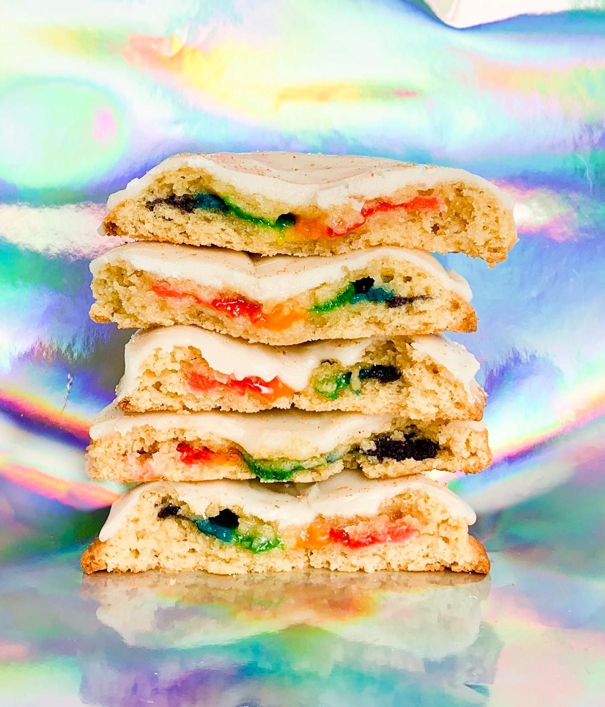 Bonus! Strictly Cookies' rainbow PRIDE cookie is back for the entire month of June. The soft, cake-like cookie is filled with the colors of the rainbow and topped with vanilla frosting and a sprinkling of gold dust. This year, 15% of the proceeds are being donated to Trueself, formally known as PFLAG, so you can crush cookies for a good cause.