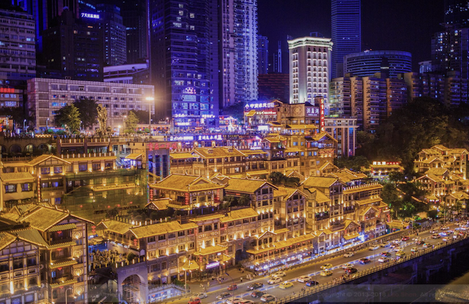 Here, visitors will find boutiques, café, restaurants, and other niche shops in an ancient Chinese decorative style spread across 11 stories. For the most jaw-dropping views, go to Chaotianmen Bridge and walk towards Hongyadong. Or visit the Chongqing Grand Theater for a view of both Hongyadong and the bridge together lit up at night. The lights are on every night between 6-10pm.