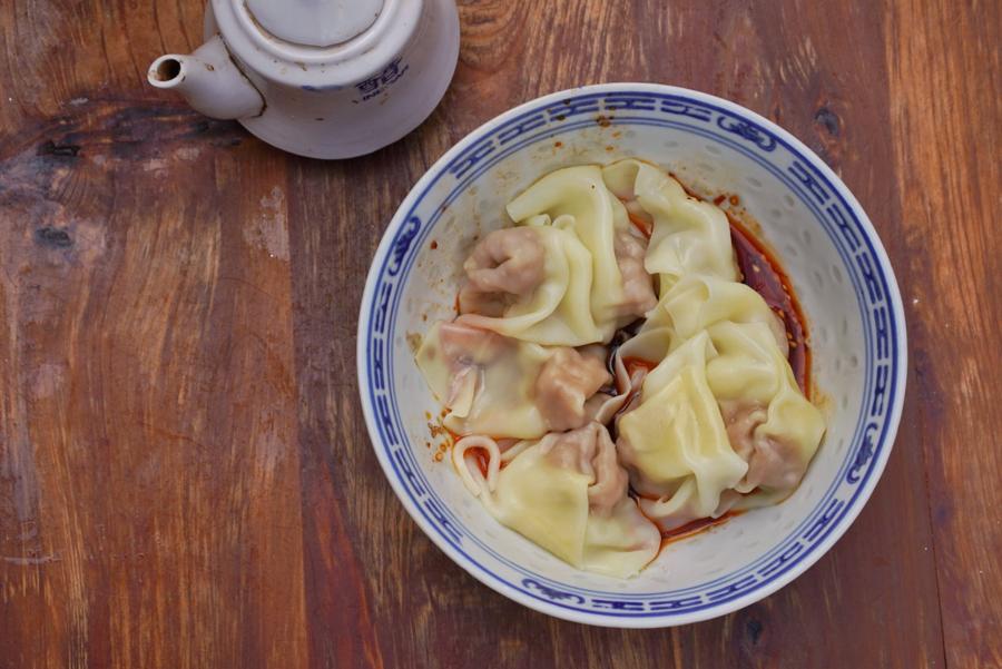 These crescent-shaped, pork-stuffed dumplings are famously found at every food stand in the city, each spot tweaking the recipe ever so slightly to cause a ripple in the die-hard fandom of one wonton shop over the next. Presented atop glistening chili oil, the pleated wrappers appear harmless, even mild, at first. But like all streetside bowls in Sichuan, the power comes from the act of mixing – the steam from the flash-boiled wonton skins mingling with the sauce, coating each morsel in a bath of silky chili oil, hot dried chilies, sweet soy sauce, garlic, and Sichuan peppercorns.