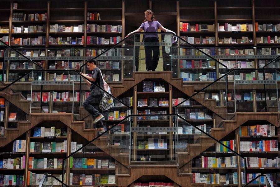 Chongqing Zhongshuge Bookstore is a renowned, architecturally surreal bookstore. Designed by Li Xiang of X+Living and opened in 2019, the 1,300-square-meter space is famous for its "mind-bending" interior that utilizes mirrors and MC Escher-inspired zig-zagging, "impossible" staircases that create an illusion of an infinite maze-like world of books. The bookstore includes the main study, dubbed The Ladder Hall, lampshade-shaped bookshelves, a children's reading room, a reading corridor, and a leisure area. Since opening, the store has garnered international recognition, winning the 2019 Best of Year Design Award and the 2020 ArchDaily Award for Best Interior Architecture.