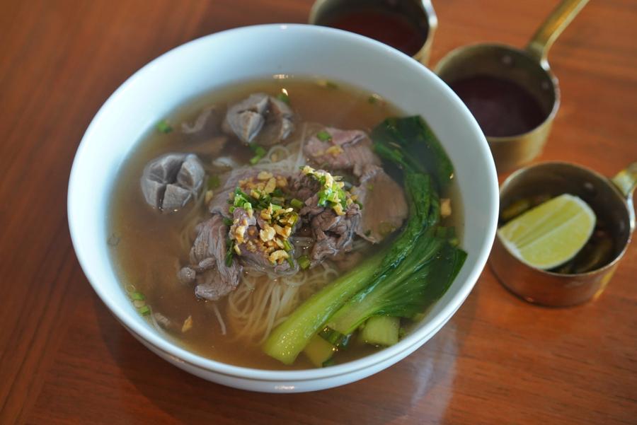 Kuy teav is a popular rice noodle soup composed of a clear broth and various toppings, including pork, beef, or seafood, fresh herbs, garlic and fish sauce. This comforting dish, sometimes dubbed “Cambodian pho,” can be found at numerous street vendors and markets, with prices typically ranging from 3,000 to 6,000 riel ($0.75 to $1.50) depending on protein selections.