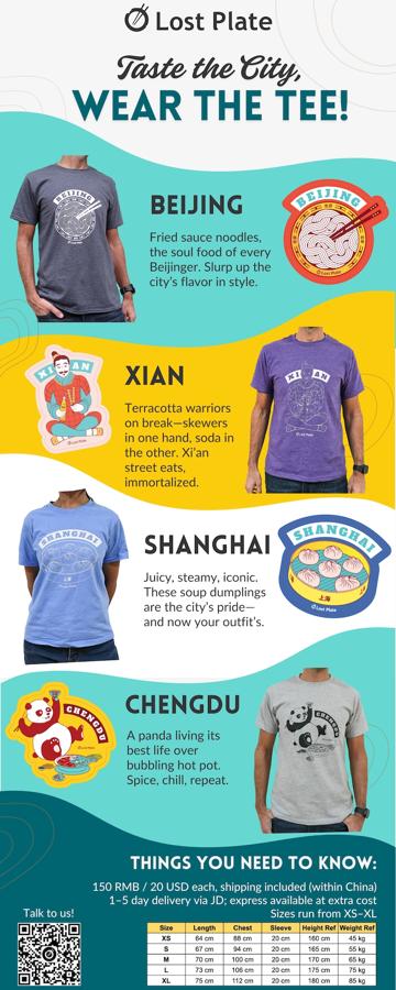 Aside from being able to purchase gift cards for tours to give to friends and loved ones, Lost Plate Food Tours recently launched city-specific, food-themed t-shirts. From xiaolongbao in Shanghai to panda’s eating hotpot in Chengdu, there’s a food-lovers t-shirt for everyone. T-shirts are RMB150 each, available in size small to XL.