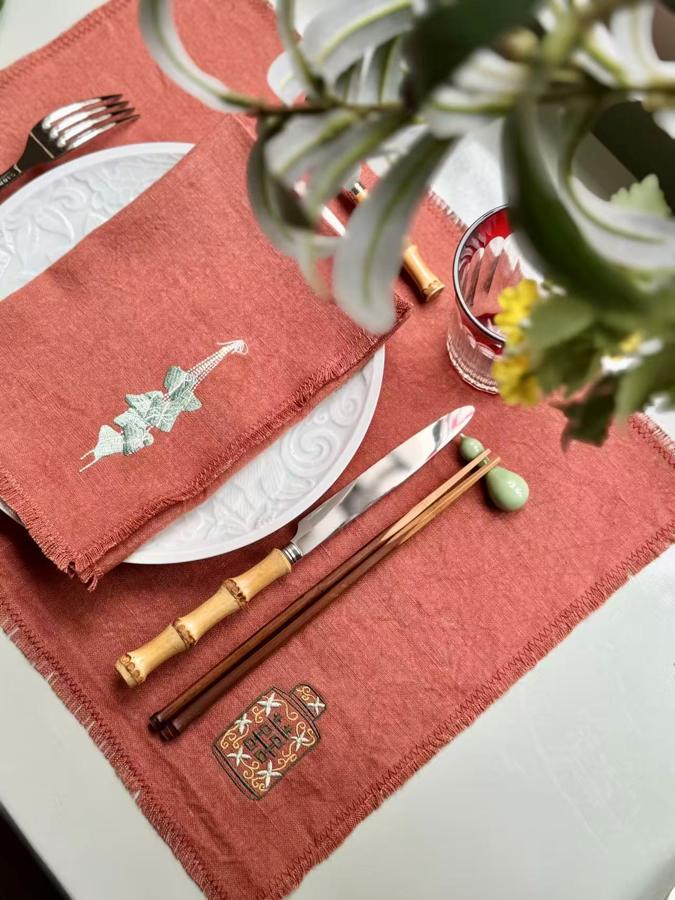 Studio NooSH’s food-inspired embroidery collection is a playful and heartfelt tribute to China’s culinary heritage, a way to bring joy to the table while building bridges between cultures. From xiaolongbao and puer tea to jiaozi and handmade dumplings, each motif tells a story of tradition, togetherness, and flavor. Studio NooSH linens are perfect for gifting, hosting, or simply celebrating the universal language of food.