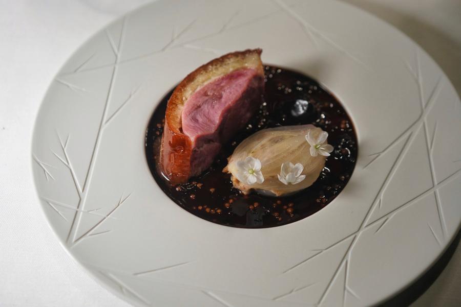 The ever-changing set menu orbits the concept of “umami” – or xian in Chinese. The aim is to re-create a cross-China journey over the multi-course meal, pulling inspiration from regional tastes. A cohesively designed experience that is at once nostalgic and ingenious, the menu weaves through moreish morsels like slow-cooked winter melon surrounded by a moat of unctuous chicken broth (made of an entire blended chicken – bones, skin, fat, and all – speckled with bottarga; fermented black garlic purée anchoring plump Huzhou duck breast to the plate puffed with chicharron-like skin; and a Michelin-quality burger with Shandong Wagyu, chef Liu’s signature fermented oyster sauce, and lotus root nestled inside a plush polished rice and soy milk bun, a riff on his recent collaboration with Shake Shack.