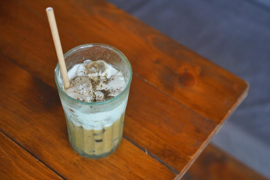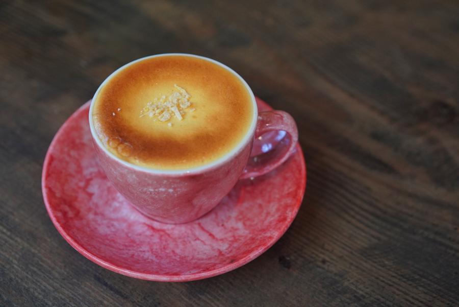 While coffee and salt may not sound like the most appetizing pair, when said salt is folded into a whipped cream, it’s a welcome addition. The fluffy amalgamation of salt-laced and frothed whipping cream tempers the robusta coffee’s intensity.