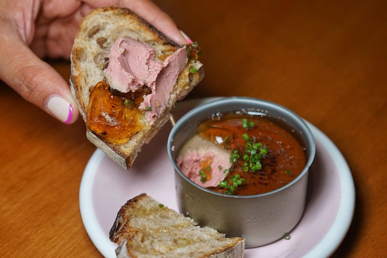 Two must-orders are the Smoked Salmon Rillete (RMB38) topped with sour cream, dill and mustard seeds and the Duck Liver Mousse (RMB48), adorned with a top layer of Shaoxing wine jelly.Both are served in tin cans with toasted sourdough, and are exactly what you crave with your glass of Pinot.