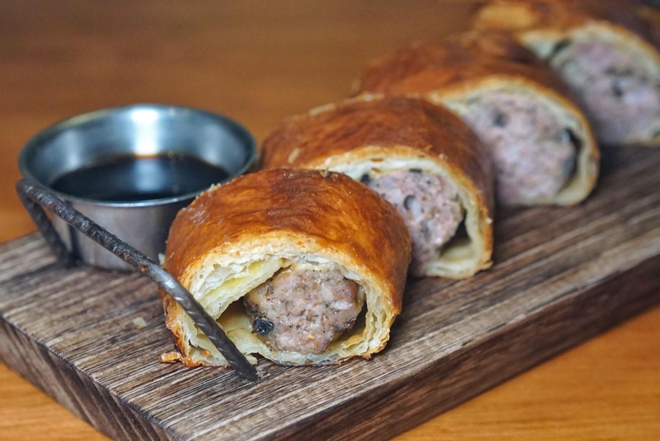 While flaky filo crust encircles the Mushroom and Sausage Roll (RMB58), best enjoyed dipped in a Marmite jus.