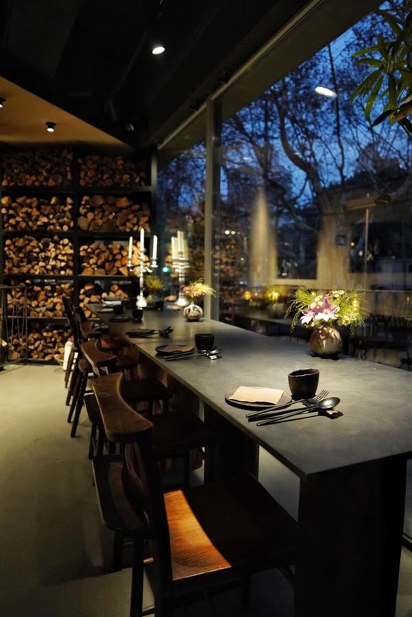 Stepping into O’Mills Firewood Alchemy is akin to entering a serene sanctuary amidst the hustle of Shanghai. The restaurant’s decor features warm amber and burnt sienna tones, complemented by natural stone and weathered metal elements. Handcrafted Longquan celadon tableware enhances the aesthetic.
