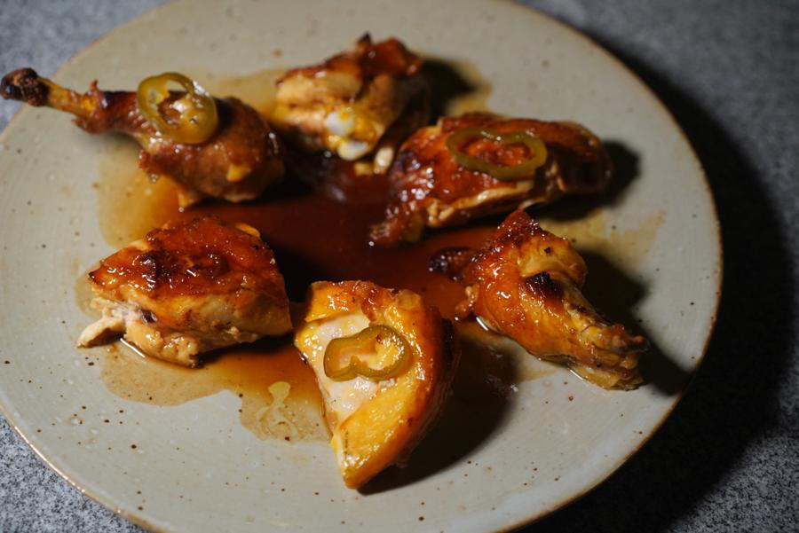 A fan favorite, the Roast Chicken (RMB158) is marinated and air-dried before being slow-roasted and smoked to succulent perfection. The taut skin puckers as it tears way, revealing juicy flesh below.