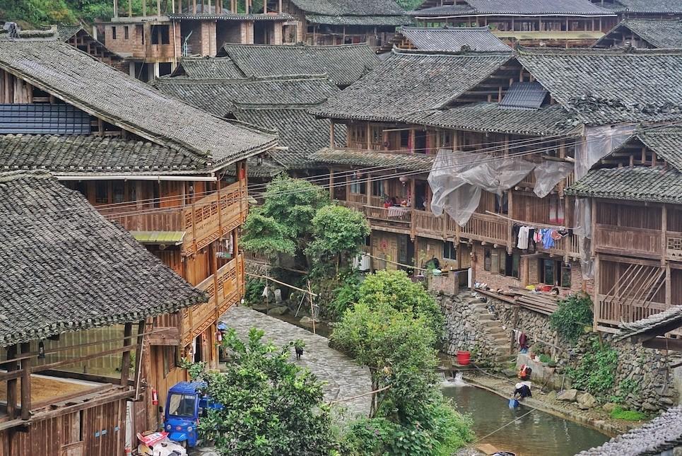 The 600 year-old Dali Dong Village (大利侗寨) in Guizhou, China, known as the Pearl Hidden in the Mountains, maintains its traditional architecture and pace of life while simultaneously appealing to travelers not wanting to forego modern comforts.