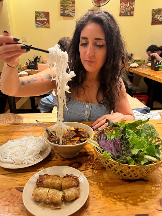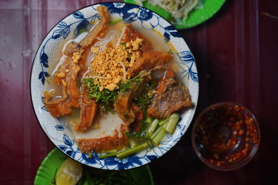 I’ve done my fair share of devouring in this street food Mecca, from Bún Thịt Nướng - Nguyễn Trung Trực – a 30-year-old, no frills stall doling out heaping bowls of vermicelli adorned with grilled pork, shatteringly crisp egg rolls, pickles, and a bouquet of herbs all doused in a zippy nuoc cham sauce – to Bún Cá Xe Dẩy – a late-night vendor ladling piping bowls of canh chua, a tangy pineapple, tamarind, and tomato soup laced with fried fish – to Xíu Mại chén Đèn Dầu – a lively street stand serving springy Vietnamese-style meatballs swimming in a fragrant broth alongside the ideal dipping fodder: a crusty baguette.