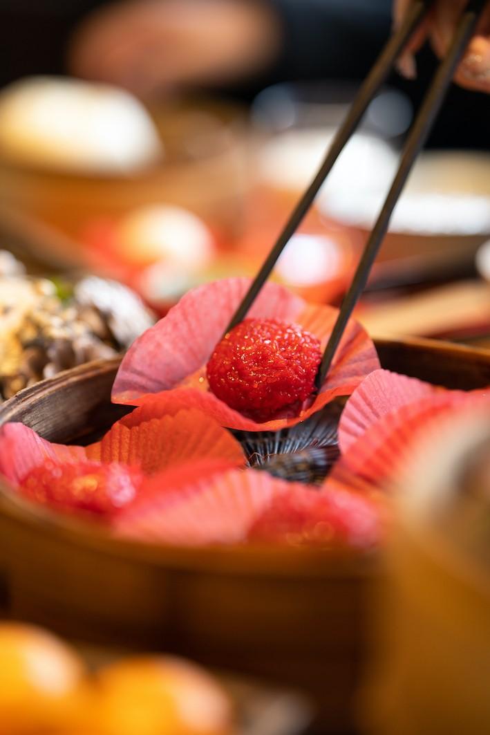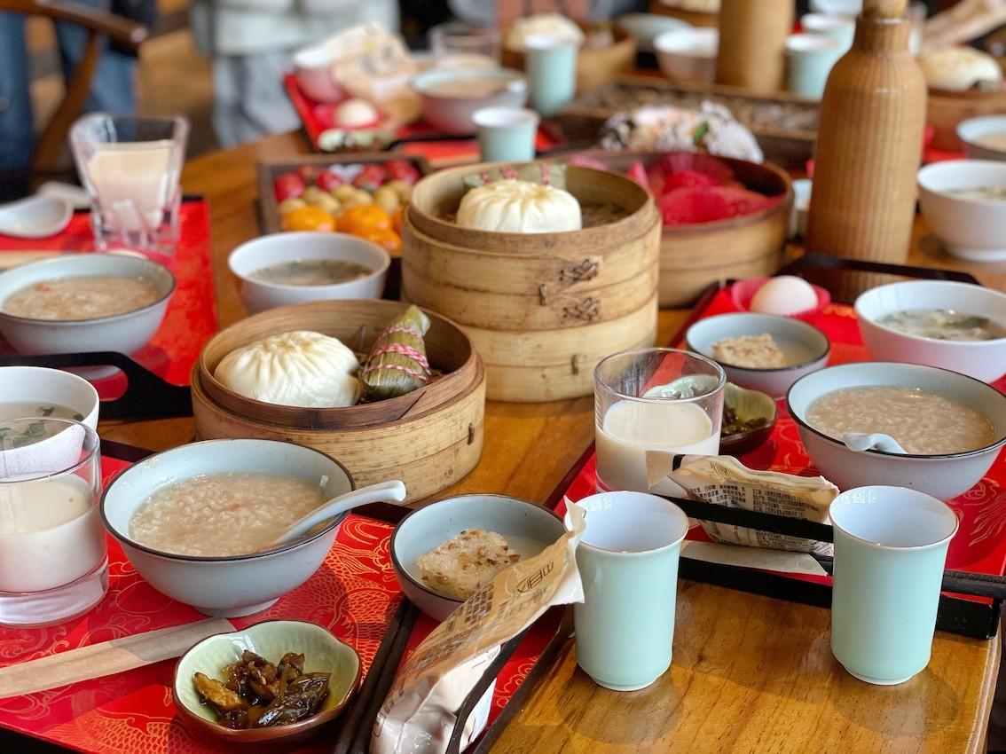 Each set included a traditional spread of warming congee, vegetable steamed baozi, sticky, meat-filled zongzi, luck long noodle soup, steamed sticky rice cakes filled with sweet black sesame paste and loads more bits and bobs for sharing and snacking.