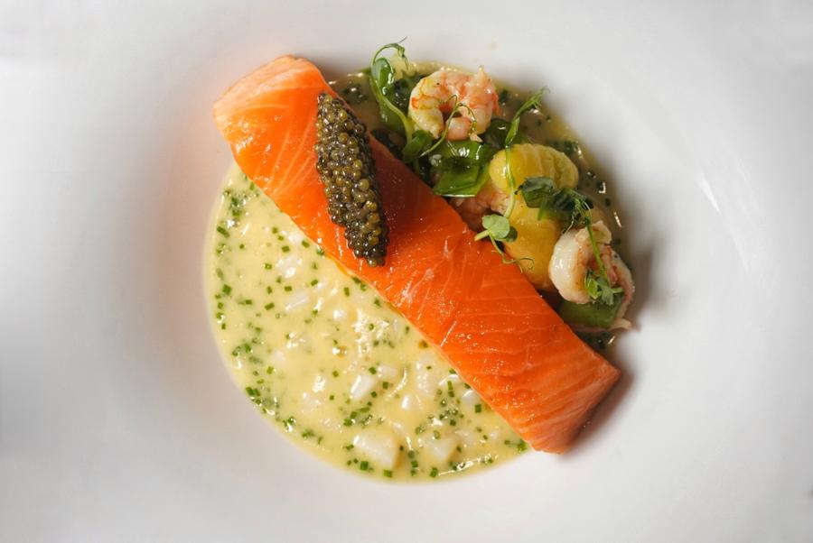 Onto the main event – a roster of from-the-fire proteins – like Pigeon & Abalone Roulade, Iberico Presa, Mayura Beef, and, the venue’s showstopper in our humble opinion, the Aurora King (RMB238). King salmon is delicately poached in butter for a velvety mouthfeel that flakes away by the mere nudge of a fork. Plated atop a velvety beurre blanc sauce ingeniously spiked with sake (that delivers a requisite acidic funk) and studded with springy nian gao (rice cakes), the fish is flanked by pillowy gnocchi puffs, sautéed amaebi sweet shrimp, and wing beans. A crown of Oscietra caviar makes this dish as royal as its regal namesake.