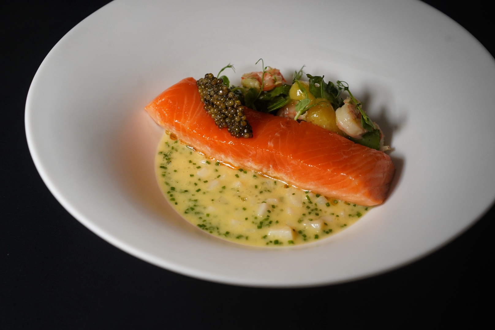 Onto the main event – a roster of from-the-fire proteins – like Pigeon & Abalone Roulade, Iberico Presa, Mayura Beef, and, the venue’s showstopper in our humble opinion, the Aurora King (RMB238). King salmon is delicately poached in butter for a velvety mouthfeel that flakes away by the mere nudge of a fork. Plated atop a velvety beurre blanc sauce ingeniously spiked with sake (that delivers a requisite acidic funk) and studded with springy nian gao (rice cakes), the fish is flanked by pillowy gnocchi puffs, sautéed amaebi sweet shrimp, and wing beans. A crown of Oscietra caviar makes this dish as royal as its regal namesake.