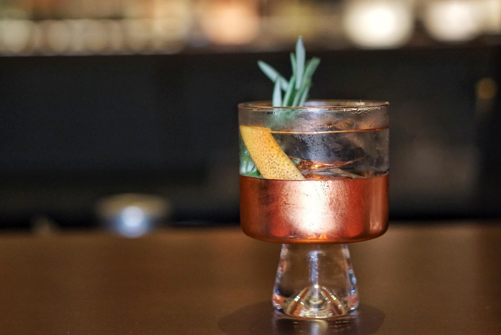The 12-meter-long teakwood bar spans across the lounge, grounding the 4-shelves stacked high with all matter of gin, organized by region, style and flavor profile.