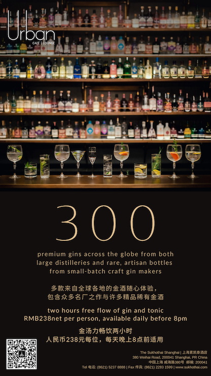 During the following months, URBAN Lounge is offering a daily, two-hour G&T free flow special for RMB238 net per person. Come by any time before 8pm and sample your way through as many of the gins as you want – across regions, styles and tastes.