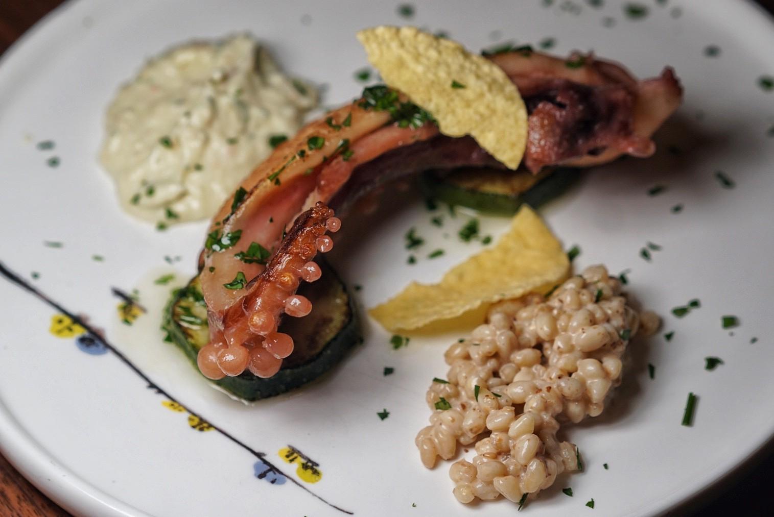 Lastly, let’s talk about the Fried Octopus Leg (RMB88), which is not – in fact – fried, but instead seemingly poached? Or what else could make it so flabby. The rubbery outer layer is inedible, while the interior is slightly mushy, tasteless. It’s flanked by a gluey tartar sauce and pearled barley slathered in aioli.