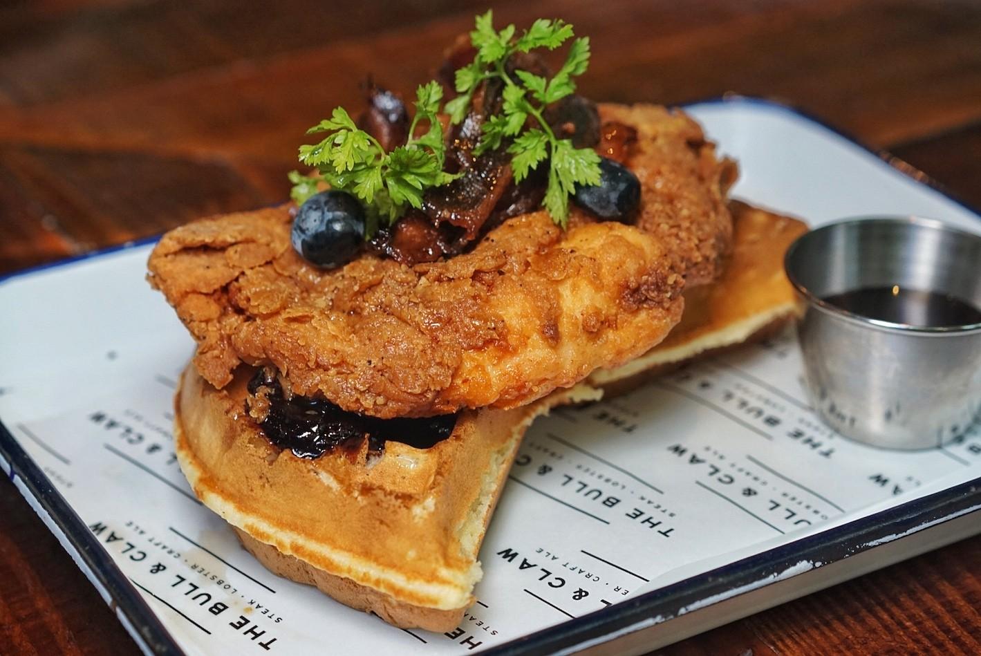 The Bull and Claw does brunch right again and again, this time with stellar Chicken & Waffles – fried chicken over homemade waffles with American-style bacon and fresh blueberry compote. The chicken breading is pleasantly spiced without deterring spice avoiders, while the crunchy waffle crisp gives way to a fluffy, buttermilk-forward interior, qualifying it as quite possibly our favorite waffle in the city. Classic and classy, this is one not to miss.