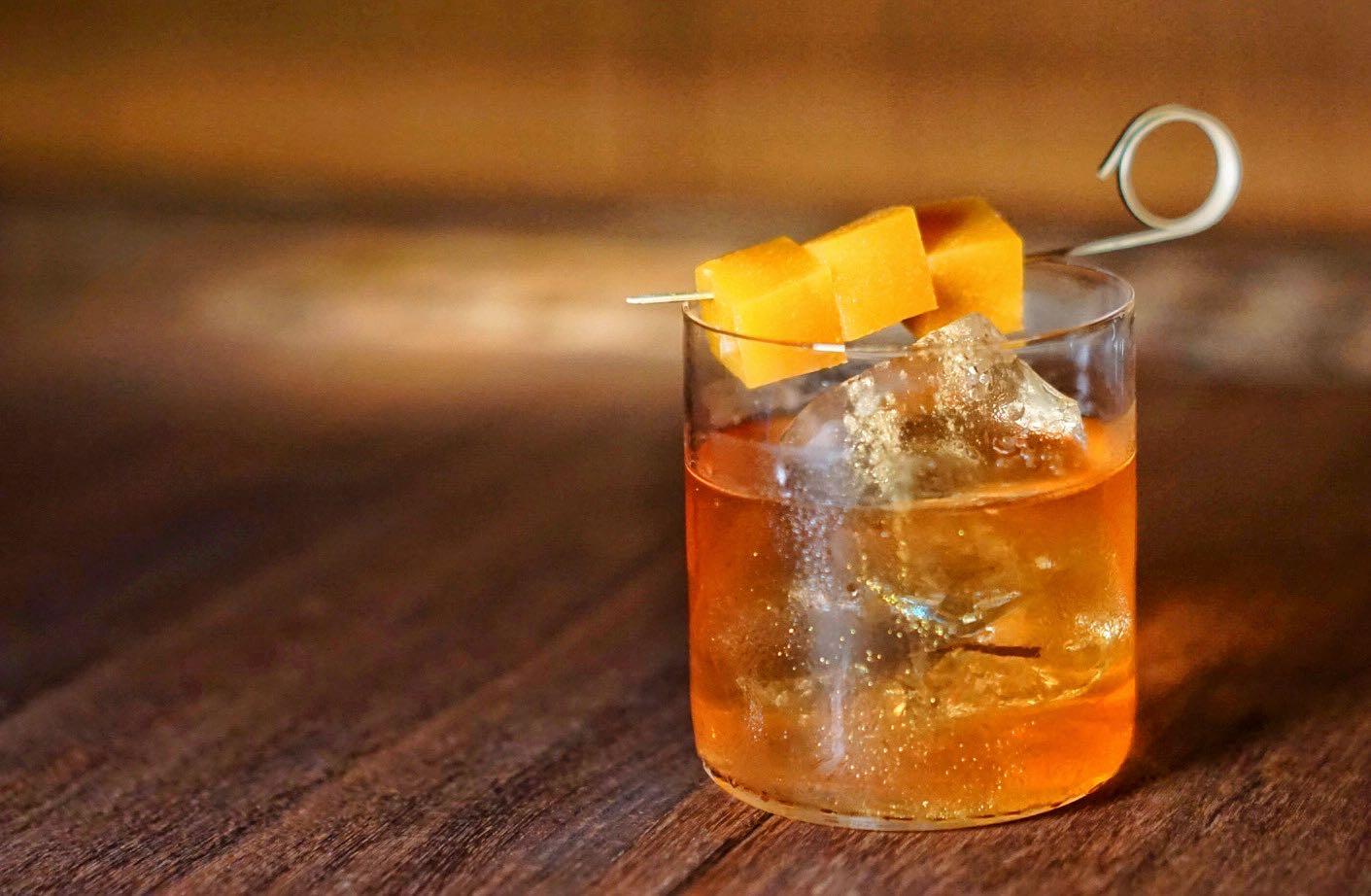 Pumpkin candy for adults comes in the form of J. Boroski's Pumpkin Spice Cocktail. Fresh pumpkin is mixed with melted beeswax, then fatwashed through bourbon and garnished with a pumpkin spice jelly. Sneakily strong and fall spiced, this play on an Old Fashioned will get that necessary buzz going, warm you up from the inside and give you the pumpkin hit you’re looking for all in one – a jack of all lanterns if you will.