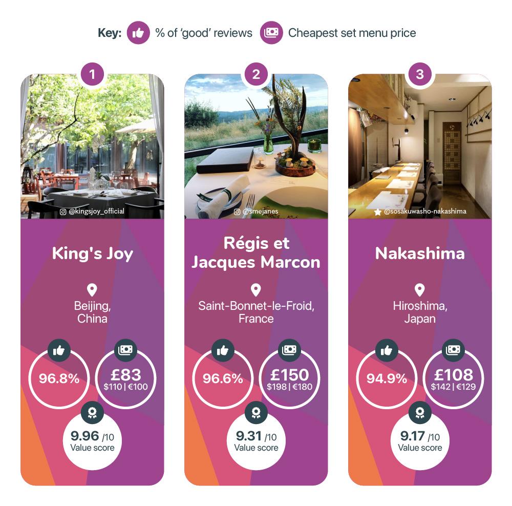 All other restaurants that made it on the Top 10 list are situated in Europe, aside from Hiroshima’s Nakashima, coming in at the number three slot, with a set menu for RMB742 and an overall value score of 9.17/10.